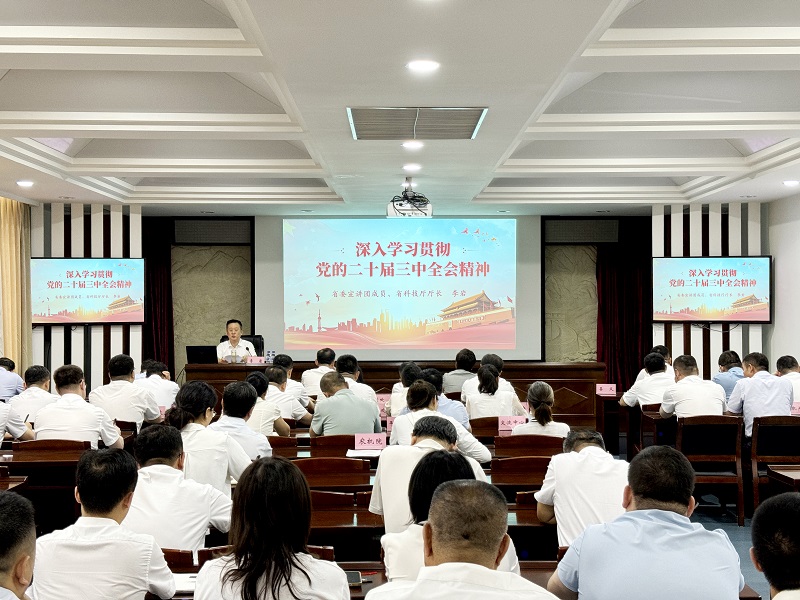 8月5日,省委宣讲团成员、省科技厅厅长李岩在省科技厅为厅机关全体党员干部及厅直属事业单位班子成员集中宣讲党的二十届三中全会精神。