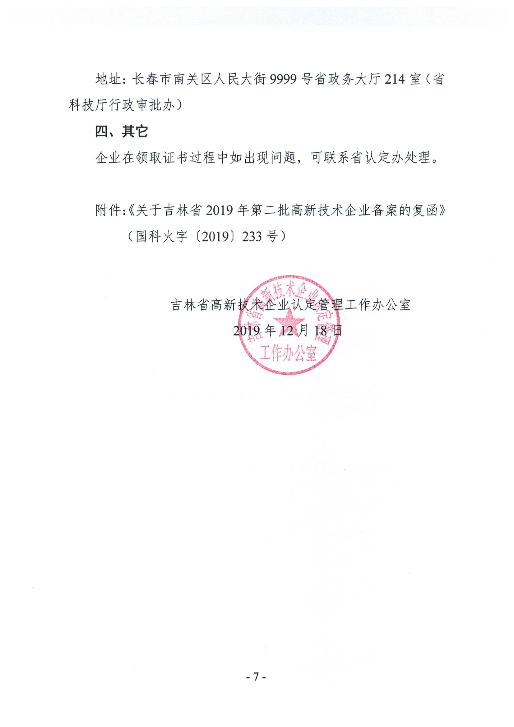 附件:《关于吉林省2019年第二批高新技术企业备案的复函》(国科火字〔2019〕233号).pdf
