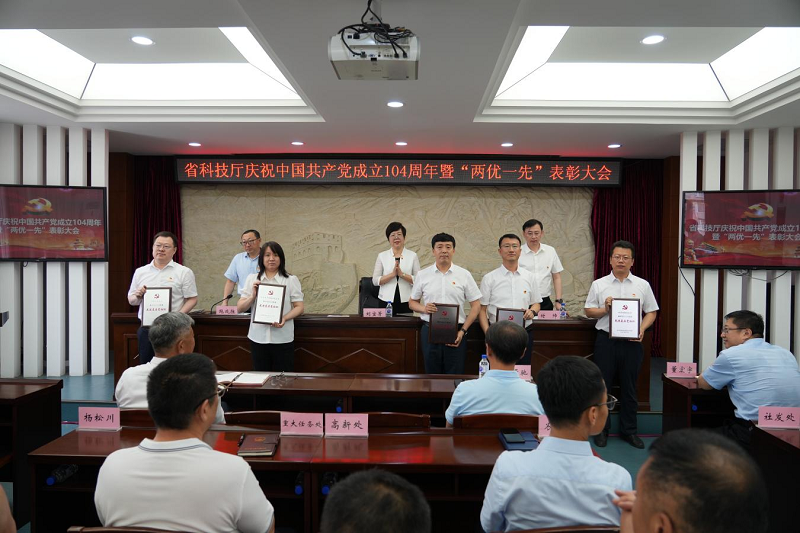 7月1日,在中国共产党成立104周年之际,为进一步动员和激励厅属各基层党组织和广大党员干部不忘初心、牢记使命,团结拼搏、砥砺奋进,省科技厅召开“两优一先”表彰大会。副厅长刘宝芳出席会议并讲话,副厅长付帅主持会议,副厅长鲍成胜宣读表彰决定。